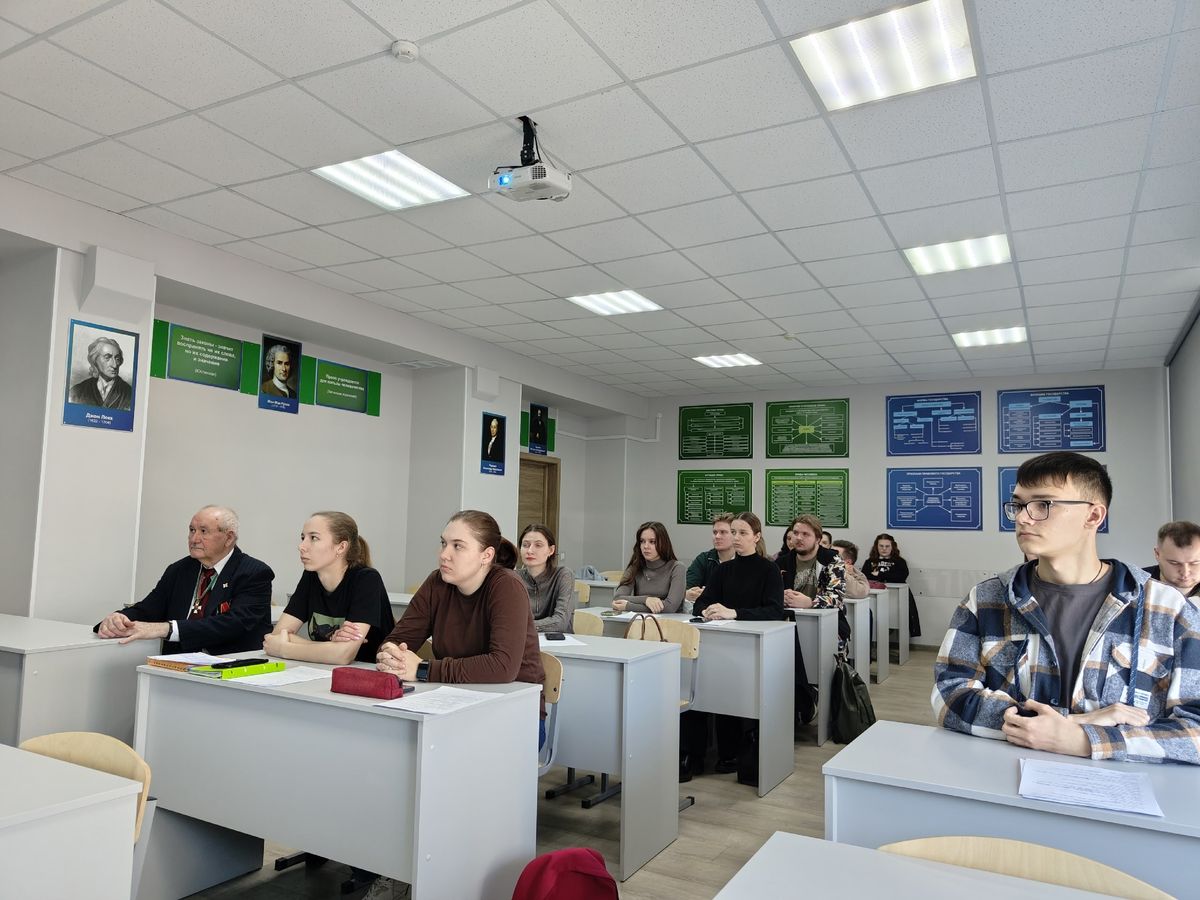 23 марта 2026 года в Смоленском филиале Международного юридического института состоялась профориентационная встреча будущих выпускников с председателем Промышленного районного суда г. Смоленска Александром Вячеславовичем Ломакиным и председателем Президиума совета ветеранов судейского сообщества области Евгением Константиновичем Волошиным.